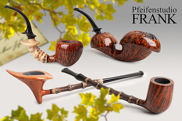 Auenlandpfeife, Borkenpfeife, Meerschaumpfeife oder Glaspfeife, Joachim Frank hat sie alle. Außerdem restauriert der 62-Jährige mit Leidenschaft gebrauchte Pfeifen. Klar, dass er auch selbst Pfeife raucht: gestopft auf eine spezielle Art, die er erfunden hat und die Pfeifenraucher weltweit als „Frank-Method“ kennen.
